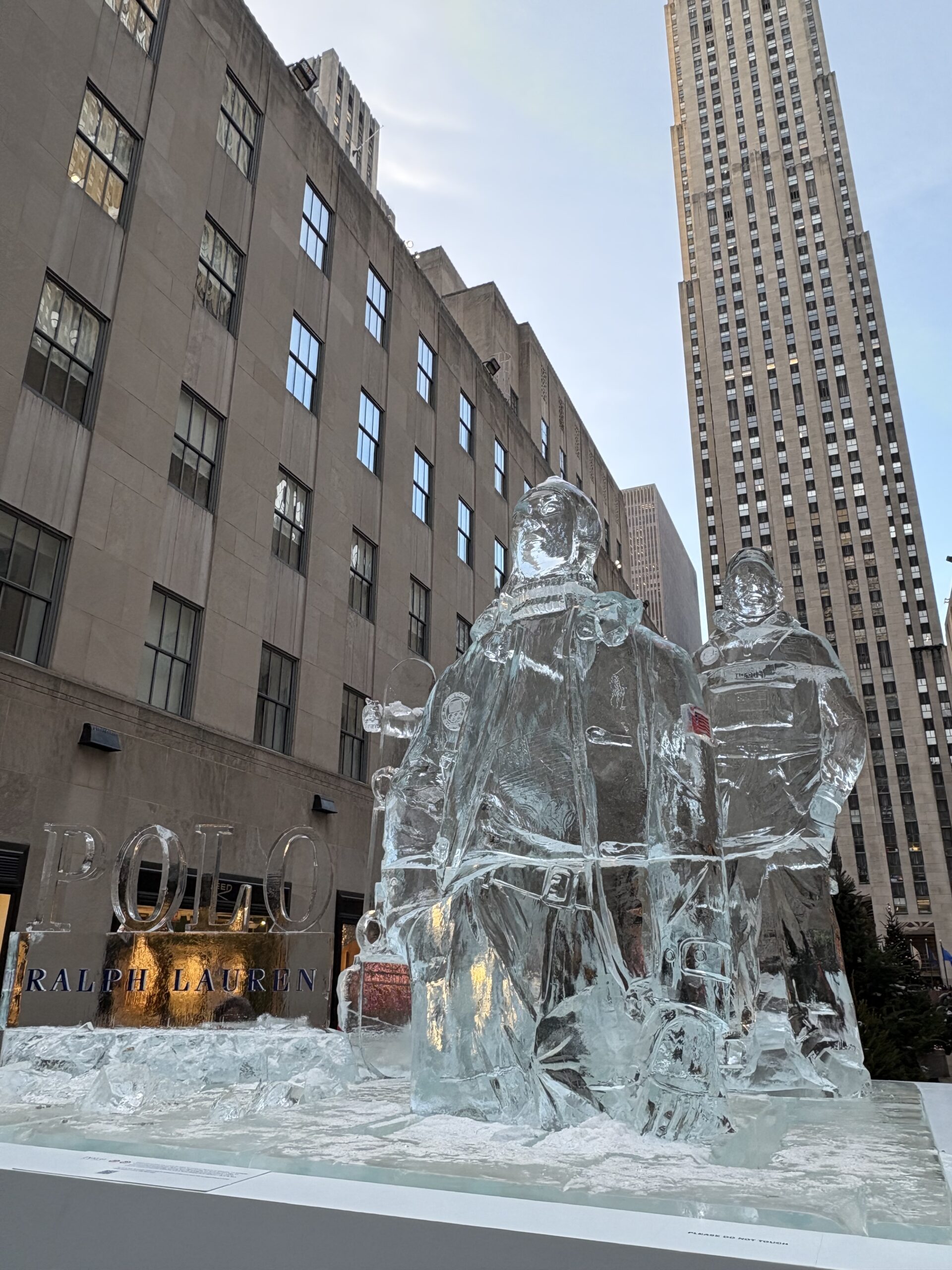 オリンピック開幕を記念して、ロックフェラーセンターに設けられたアメリカ代表のユニフォームスポンサーであるRalph Laurenによる氷の像。